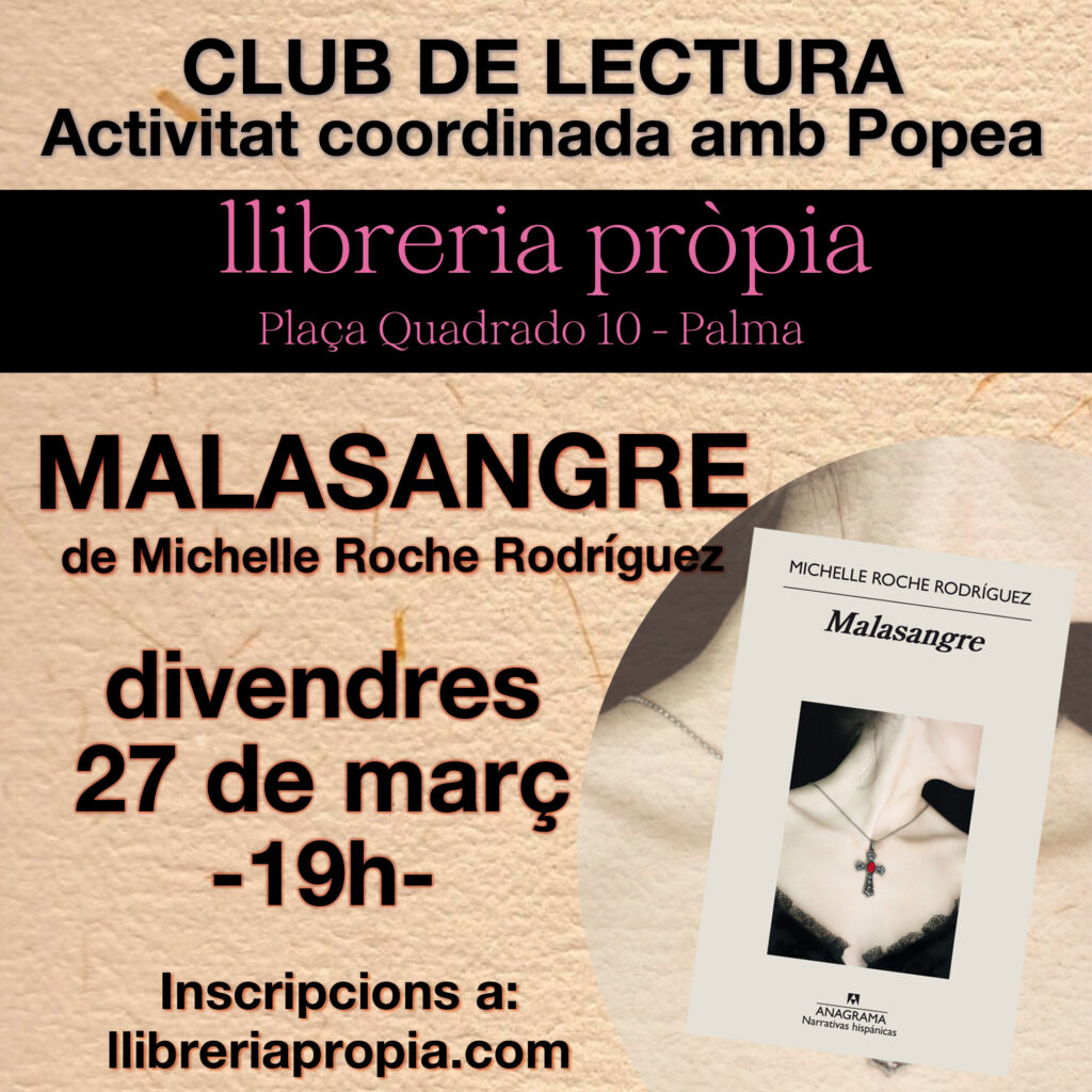 Divendres 27 de març. 19h Club de lectura -Malasangre de Michele Roche Rodríguez- Activitat coordinada amb Popea Col·laboració a partir de…